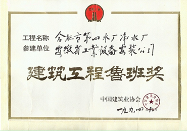 工程概況:為增加供水能力,合肥市自來水公司將巢湖水作為水源地,1992年合肥市自來水公司決定在合肥郊區(qū)義城新建第四凈水廠,設計供水能力27.5萬立方,凈水廠新建四座反應池、四座沉淀池、三座濾池、一座加氯間、一座送水泵房及一條Φ1200mm和一條Φ1400m進水管線、一座5000立方清水庫、一座35kV變電所。工程于1992年3月9日開工、1993年10月11日竣工并投入使用。