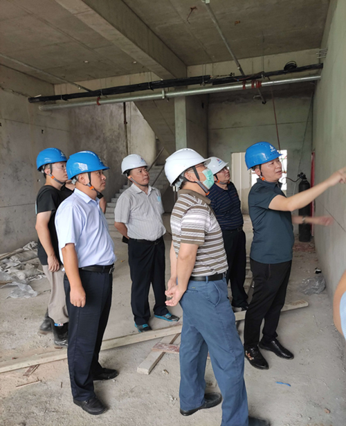 童宗勝一行深入一線,實地查看施工現(xiàn)場工程進度,并召開現(xiàn)場會聽取匯報,叮囑項目負責人要把握時間節(jié)點,做好土建施工和裝飾工程的雙配合,全力以赴保障交付。同時指出一定要疫情防控和防暑降溫一起抓,確保工程質量安全,拿出拳頭產品,打造精品工程,展現(xiàn)建工實力。