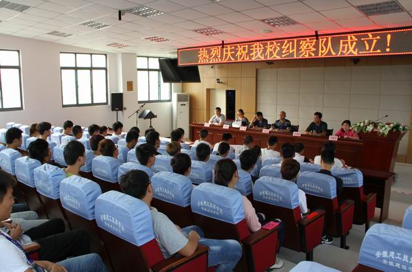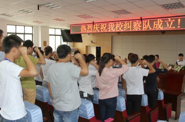 9月23日下午三點,校衛(wèi)隊成立大會在學(xué)校錄播室舉行。副校長呂良玉、學(xué)生處處長付書亭、建筑工程系黨支部書記李波、機電工程系黨支部書記朱曉玲、建筑經(jīng)濟管理系黨支部書記李繼萍、保衛(wèi)處鮑少華老師和所有校衛(wèi)隊成員參加了儀式。