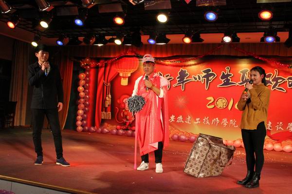 12月30日晚,安徽建工技師學(xué)院2016年迎新年師生聯(lián)歡晚會(huì)在學(xué)校禮堂隆重舉行。校長(zhǎng)張衛(wèi)東、黨委書(shū)記錢(qián)森林、安徽建工建筑材料有限公司副總經(jīng)理徐友修、工會(huì)主席韓振遠(yuǎn),安徽建工技師學(xué)院副校長(zhǎng)任建設(shè)、周元清、呂良玉,紀(jì)委書(shū)記、工會(huì)主席龔維加與各處室、系部負(fù)責(zé)同志和廣大師生員工、部分離退休老同志參加了聯(lián)歡。