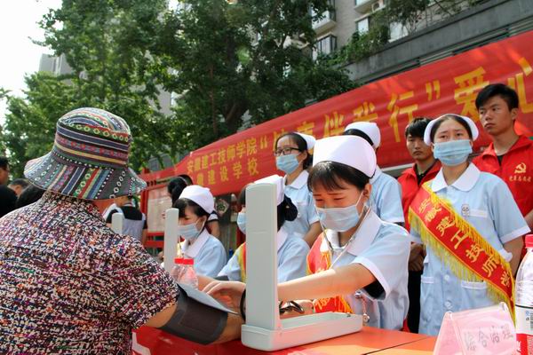 近年來,安徽建工技師學(xué)院一直將志愿服務(wù)進(jìn)社區(qū)活動(dòng)作為學(xué)校志愿者活動(dòng)開展的重要內(nèi)容,6月16日上午,安徽建工技師學(xué)院組織相關(guān)專業(yè)學(xué)生赴望湖社區(qū)開展了以“服務(wù)進(jìn)社區(qū),健康伴我行”為主題的愛心公益活動(dòng)。