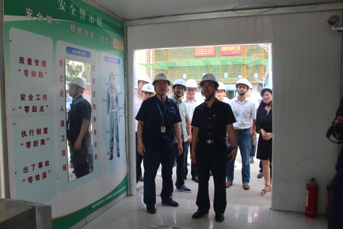 費(fèi)書記一行首先深入施工現(xiàn)場(chǎng)參觀了解工程建設(shè)情況,并不時(shí)詢問青年職工的生活情況及存在的困惑和問題。費(fèi)書記為整個(gè)施工現(xiàn)場(chǎng)布局整齊、場(chǎng)地整潔、環(huán)境綠化美觀及工程創(chuàng)新技術(shù)的應(yīng)用表示高度贊賞。