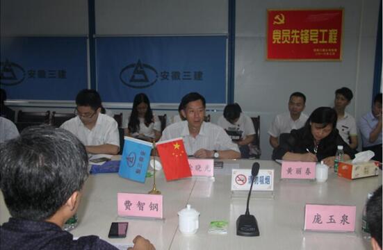 為深入貫徹中央群團(tuán)工作會(huì)議精神,進(jìn)一步落實(shí)團(tuán)干聯(lián)系團(tuán)員青年的制度,有序有力推動(dòng)共青團(tuán)工作改革創(chuàng)新, 6月23日,省國(guó)資委群眾工作處副處長(zhǎng)、團(tuán)工委副書記費(fèi)智鋼,應(yīng)邀到合肥市二院項(xiàng)目部參加安徽三建團(tuán)委專題開放日活動(dòng),并為公司團(tuán)委獲得2015年度安徽省“五四紅旗團(tuán)委”授牌。省國(guó)資委團(tuán)工委龐玉泉、建工集團(tuán)工會(huì)主席、公司黨委書記徐曉光、建工集團(tuán)團(tuán)委書記王詩(shī)旵及公司紀(jì)委書記黃麗春、團(tuán)委書記張?chǎng)蔚扰阃?。公司在肥團(tuán)支部負(fù)責(zé)人、項(xiàng)目一線青年代表共30余人參加了開放活動(dòng)。