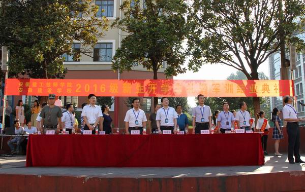 典禮上,軍訓(xùn)學(xué)員們進(jìn)行了分列式、擒敵拳、韻律體操、隊(duì)列會(huì)操、軍體拳和手語表演,向全院師生展現(xiàn)了軍訓(xùn)期間的訓(xùn)練成果。任建設(shè)副院長(zhǎng)宣讀了《關(guān)于2016級(jí)學(xué)生軍訓(xùn)的表彰決定》,對(duì)在10天軍訓(xùn)中表現(xiàn)突出的連隊(duì)和學(xué)員進(jìn)行了表彰。新生代表2016級(jí)幼兒教育專業(yè)的朱群同學(xué)代表全體新生進(jìn)行了發(fā)言。