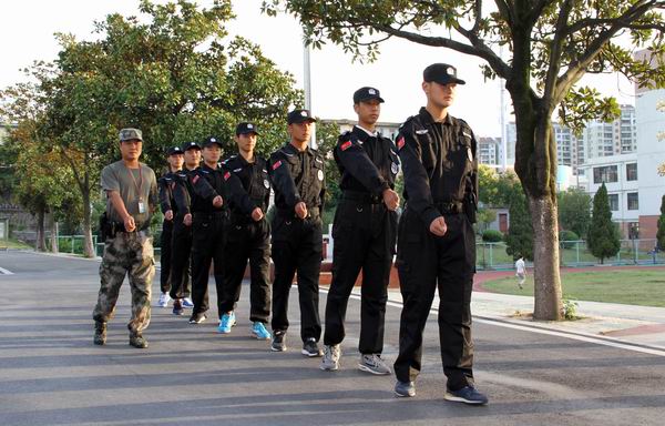 教官帶領(lǐng)校衛(wèi)隊(duì)在校園內(nèi)巡邏