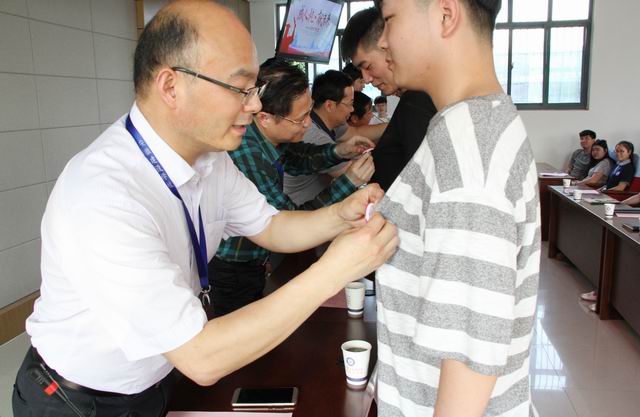 學(xué)院領(lǐng)導(dǎo)給參加活動的學(xué)生代表佩戴了成人徽章