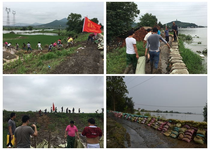 2016年7月7日,暴雨剛剛停歇,但巢湖市錐山村段裕溪河水位持續(xù)上漲,即將漫過河提浸泡萬畝良田及村莊,情況萬分危急。接到村政府的求援信息后,青年突擊隊員立刻動身前往救援。大家頭頂烈日,與時間賽跑,用汗水與洪水較量,濕身苦干,與當?shù)乩习傩占捌渌仍犖閳F結(jié)一致、通力配合,裝泥沙、運沙袋、碼沙袋,對水塘大壩進行泄洪,對地方農(nóng)田水系進行疏通,對路基邊坡進行搶護,對人員出行進行指揮幫助。大家眾志成城、萬眾一心,與洪水進行了一場嚴酷較量,成功化解了險情。