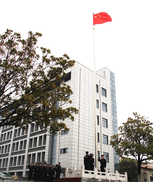 7點30分,在全體師生的注視下,我院國旗護(hù)衛(wèi)隊邁著整齊的步伐護(hù)送國旗來到國旗臺。在雄渾嘹亮的國歌聲中,升旗手振臂一揮,鮮艷的五星紅旗冉冉升起。全院師生面向國旗莊嚴(yán)肅立,行注目禮,心中漾起崇高的愛國之情。