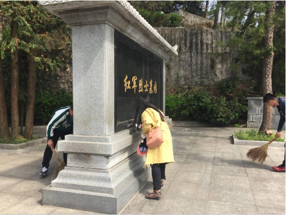 參觀結(jié)束后,青年團員們抑制住激動的心情,組織起墓園清潔活動。此時正值雨季,樹葉經(jīng)風雨吹打,稀稀落落覆滿了陵園,大家合理分工,有序的對紅軍烈士墓園進行了清掃。大伙們清掃的動作干練而又小心,生怕打擾了紅軍烈士的安眠,擦拭的地方干凈而又到位,生怕浮塵暗淡了革命烈士的光榮。