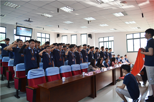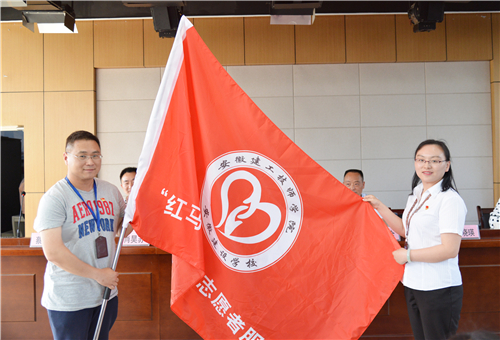 隨后,汽車與機電技術(shù)系書記助理蔡克老師宣讀了《關(guān)于同意成立“紅馬甲”青年志愿者服務隊的批復》。德育工作部副主任、團委書記周曉瑛同志為“紅馬甲”青年志愿者服務隊授旗?!凹t馬甲”青年志愿者服務隊副隊長陳亞楠老師宣讀了《“紅馬甲”青年志愿者服務隊章程》。18機電一體化班的李成同學代表青年志愿者發(fā)言,并帶領全體青年志愿者面對隊旗進行了宣誓。