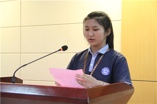 接著,來自建筑藝術(shù)系李欣蕊同學(xué)代表全體學(xué)生發(fā)言。她回顧了一學(xué)期來的學(xué)習(xí)生活體會,號召全體同學(xué)認(rèn)真復(fù)習(xí),在期末考試中取得好成績,文明離校,度過一個安全愉快有意義的暑假。