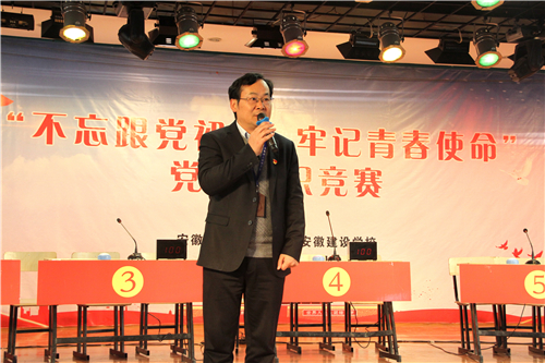 知識(shí)競(jìng)賽伊始,學(xué)院黨委書記、院長(zhǎng)張衛(wèi)東講話。他指出,院團(tuán)委組織的本次黨團(tuán)知識(shí)競(jìng)賽緊緊圍繞學(xué)院主題教育中心,非常及時(shí),非常必要。學(xué)習(xí)黨團(tuán)知識(shí)不僅可以加深同學(xué)們對(duì)黨團(tuán)理論、路線、方針的理解,進(jìn)一步鞏固黨團(tuán)基本理論和基本知識(shí),也有利于推進(jìn)和加強(qiáng)黨團(tuán)意識(shí)教育,引導(dǎo)廣大黨、團(tuán)員堅(jiān)定共產(chǎn)主義理想信念。他希望所有的參賽隊(duì)員和觀眾們能切實(shí)增強(qiáng)“四個(gè)意識(shí)”、堅(jiān)定“四個(gè)自信”、做到“兩個(gè)維護(hù)”,鮮明樹(shù)立起不忘初心的標(biāo)尺,堅(jiān)決擔(dān)負(fù)起牢記使命的責(zé)任,熱愛(ài)祖國(guó),熱愛(ài)學(xué)校,做新時(shí)代健康向上好青年。