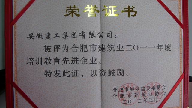 近日,在合肥市建委召開的2012年建筑業(yè)工作會議上,安徽建工集團榮獲“合肥市建筑業(yè)二0一一年度培訓教育先進企業(yè)”榮譽稱號。