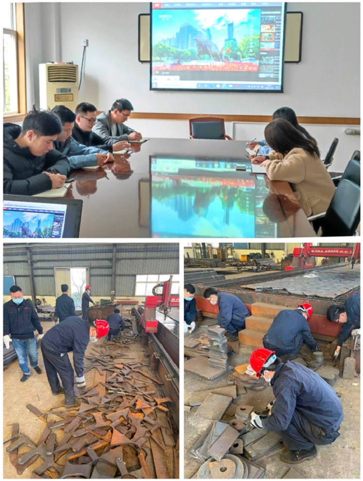綜合團(tuán)支部積極響應(yīng)號(hào)召,組織團(tuán)員青年開展了以協(xié)助清理廢棄邊角料為主要內(nèi)容的志愿服務(wù)活動(dòng),積極引導(dǎo)支部團(tuán)員青年發(fā)揚(yáng)愛崗敬業(yè)、無私奉獻(xiàn)的“螺絲釘”精神。由于等離子切割效率高,任務(wù)重,為了加快生產(chǎn)進(jìn)度,故臨時(shí)將料頭堆積在一旁。團(tuán)員青年齊心協(xié)力,將堆積的廢棄料頭進(jìn)行了清理,盡管大家搬得滿身大汗,但臉上還洋溢著燦爛的笑容。緊接著,團(tuán)員青年們還對(duì)數(shù)控下料零部件碼放區(qū)域進(jìn)行整理歸類,既騰出來了空閑場(chǎng)地,又將零部件按規(guī)格碼放,方便師傅們轉(zhuǎn)運(yùn)。最后,團(tuán)員青年們分為兩隊(duì),一隊(duì)將分廠廢舊紙盒集中清理,另一隊(duì)打掃車間衛(wèi)生,還車間師傅一個(gè)干凈整潔的工作環(huán)境。