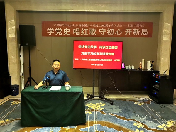 5月14日,集團(tuán)控股公司總法律顧問(wèn)、集團(tuán)黨史學(xué)習(xí)教育第六宣講組組長(zhǎng)申玉恩為服務(wù)中心全體員工就黨史學(xué)習(xí)教育作專(zhuān)題宣講報(bào)告。會(huì)議由中心黨總支書(shū)記、總經(jīng)理施愛(ài)民主持。