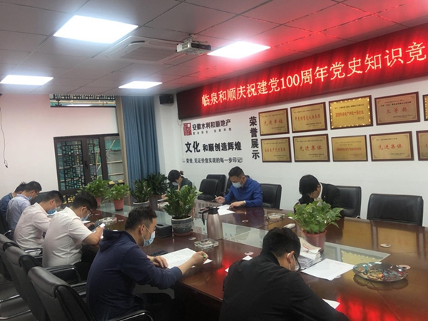 上好“創(chuàng)新黨建課”,和順地產(chǎn)所屬各單位一方面利用網(wǎng)絡(luò)平臺與互聯(lián)網(wǎng)資源,積極開展視頻黨課,組織全體黨員集中觀看黨史紀(jì)錄片、紅色主題影片;另一方面,積極組織戶外紅色教育實踐,赴臺兒莊、藕塘革命紀(jì)念館、渡江戰(zhàn)役總指揮前委舊址等地聆聽革命故事,感受革命情懷;除此之外,多家黨支部“以考促學(xué)”,開展黨史知識測試、知識競賽等活動,不斷鞏固學(xué)習(xí)效果。