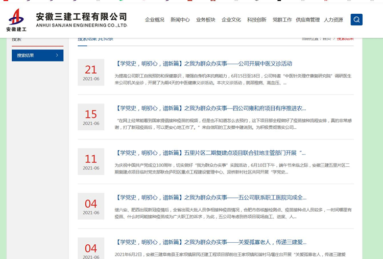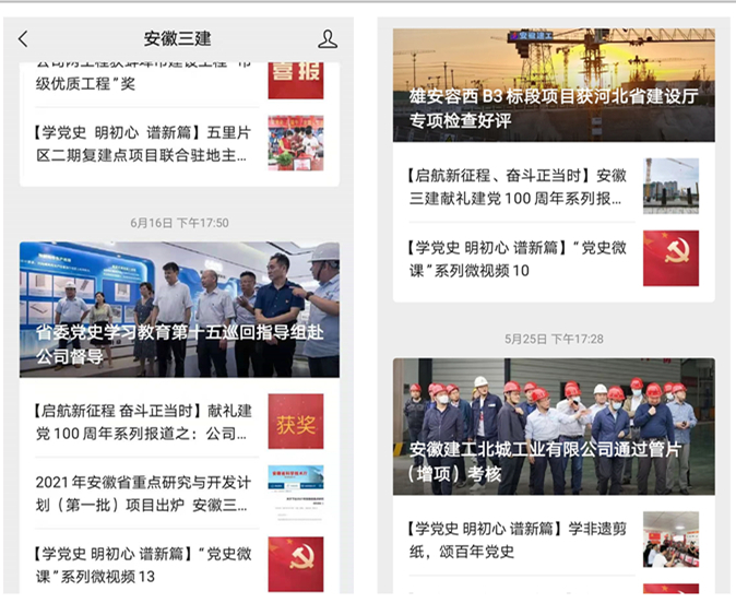黨史學(xué)習(xí)教育開展以來,安徽三建公司黨委(以下簡稱公司黨委)認(rèn)真貫徹落實黨中央部署和省委、省國資委黨委和集團(tuán)黨委要求,牢牢把握“學(xué)史明理、學(xué)史增信、學(xué)史崇德、學(xué)史力行”的總要求,有力有序推動學(xué)習(xí)教育不斷走深走實走心。
