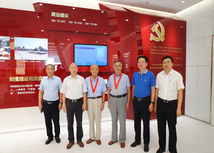 座談會前,與會人員參觀了新落成的集團展廳,共同回顧安徽建工近70年的發(fā)展歷程,全面了解集團各項業(yè)務(wù)開展情況,通過一篇篇歷史文獻、一張張珍貴圖片、一件件獎牌獎杯,系統(tǒng)全面為參觀人員展開了一幅企業(yè)各個發(fā)展時期的壯闊畫卷。在展廳黨建品牌建設(shè)文化墻前,趙時運、劉家靜等集團領(lǐng)導向老黨員代表劉振武、郎小懷現(xiàn)場頒發(fā)“光榮在黨50年”紀念章,并合影留念。