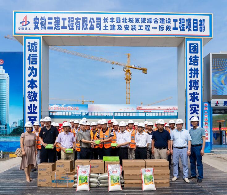7月24日上午,建工控股總法律顧問申玉恩冒著高溫酷暑,來到安徽三建長豐縣北城醫(yī)院項目慰問奮戰(zhàn)在施工一線的干部職工,為他們送去了防暑降溫用品,并深入一線,實地察看了施工現(xiàn)場??毓煞墒聞?wù)部部長王勇、信訪保衛(wèi)部部長駱新農(nóng),三建公司黨委書記、董事長左登宏、紀委書記、工會主席李家保等陪同慰問。
