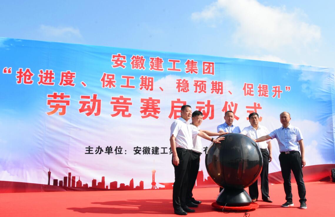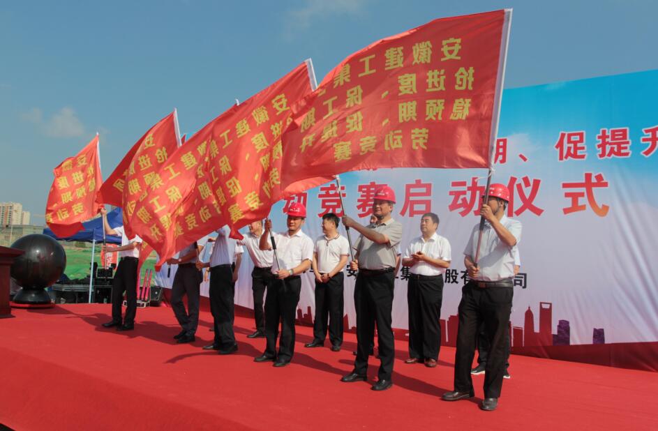 啟動儀式最后,蒙城縣主要領(lǐng)導(dǎo)和集團(tuán)公司有關(guān)領(lǐng)導(dǎo)共同按下啟動球,并向參賽單位授旗,標(biāo)志著安徽建工集團(tuán)“搶進(jìn)度、保工期、穩(wěn)預(yù)期、促提升”勞動競賽正式啟動。