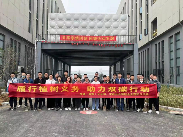 3月14日上午,房建(裝飾)分公司團(tuán)支部聯(lián)合市政分公司團(tuán)支部共同開展“履行植樹義務(wù),助力雙碳行動”主題義務(wù)植樹活動,分公司黨支部書記攜團(tuán)員青年等30余人參加活動。