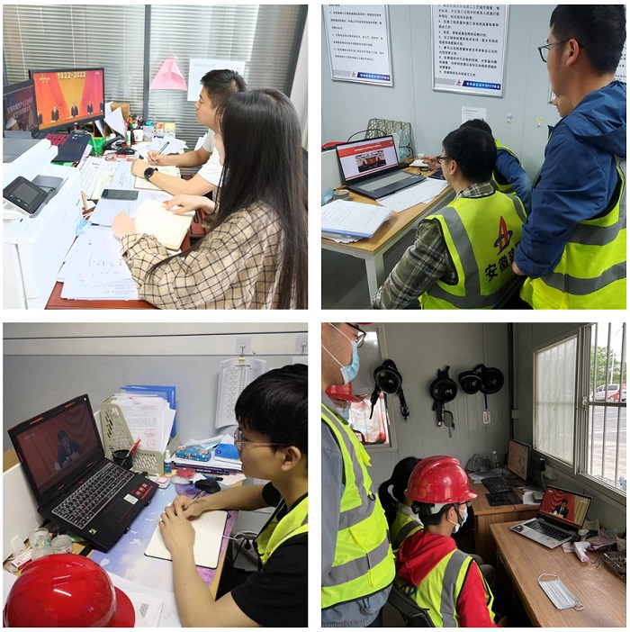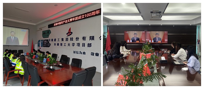 5月10日上午10點(diǎn),慶祝中國共產(chǎn)主義青年團(tuán)成立100周年大會在人民大會堂隆重舉行,習(xí)近平總書記發(fā)表重要講話。安建總承包團(tuán)委第一時(shí)間作出工作部署,組織所屬16個(gè)團(tuán)支部200余名團(tuán)員青年分別在屬地、各項(xiàng)目部收看大會實(shí)況直播。