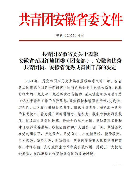 “安徽省優(yōu)秀共青團員”是共青團安徽省委授予省內(nèi)團員的最高榮譽,主要的目的是通過表彰在各個領(lǐng)域涌現(xiàn)出的先進典型,激勵廣大團組織和團員,團干部比學趕超、再創(chuàng)佳績。我院學子獲評“安徽省優(yōu)秀共青團員”,不僅是對學生個人的肯定,更是對學院團學工作的肯定,彰顯學院在堅持立德樹人根本任務、貫徹“三全育人”理念方面取得的良好工作成效。