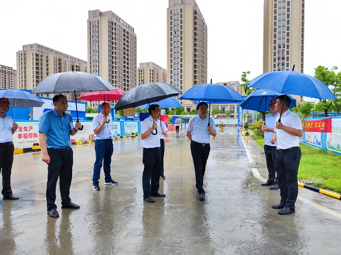 在王家壩建投(阜陽公司),王汪苗冒雨來到阜南縣中醫(yī)院新區(qū)二期項目現(xiàn)場,認真聽取項目負責人關于工程進展、技術創(chuàng)新、勞動競賽、創(chuàng)建魯班獎、黨員先鋒號等“三號同創(chuàng)”工作匯報。在渦河建投(第一公司),王汪苗詳細了解渦河建投重組半年多來的建設運營發(fā)展和項目實施情況等。