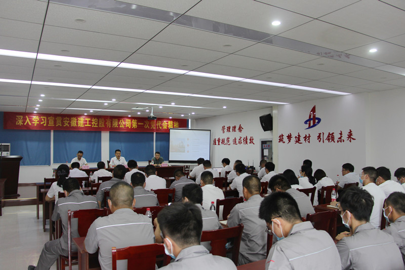 7月19日上午,建工股份副總經(jīng)理、建材科技黨委書記、董事長張鍵赴安徽瑞特新型材料有限公司宣貫建工控股第一次黨代會精神。建材科技黨委副書記、工會主席胡運春主持宣講會。