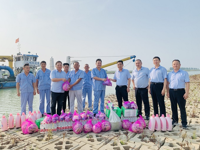 7月19日,公司黨委副書記、總經(jīng)理杜海峰,公司黨委委員、副總經(jīng)理董雙武赴引江濟淮疏浚項目“皖蛟龍?zhí)枴贝犖繂枴?/span>送清涼”