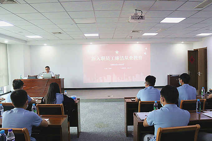 公司黨委委員、紀委書記楊松為新員工講授了廉潔從業(yè)教育課程