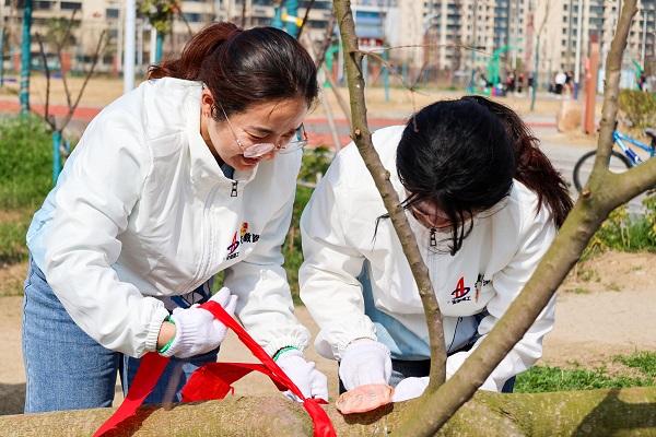 一到達綠化地點,全體團員青年熱情高漲,干勁十足,大家拿起鐵楸、水桶等工具,分工協(xié)作,挖坑栽苗、培土澆水、夯實土層、撿拾雜物,各個環(huán)節(jié)銜接有序,配合默契。經(jīng)過大家的辛勤勞動,一棵棵新植的數(shù)苗昂然挺立,在和煦的微風中萌發(fā)盎然生機。