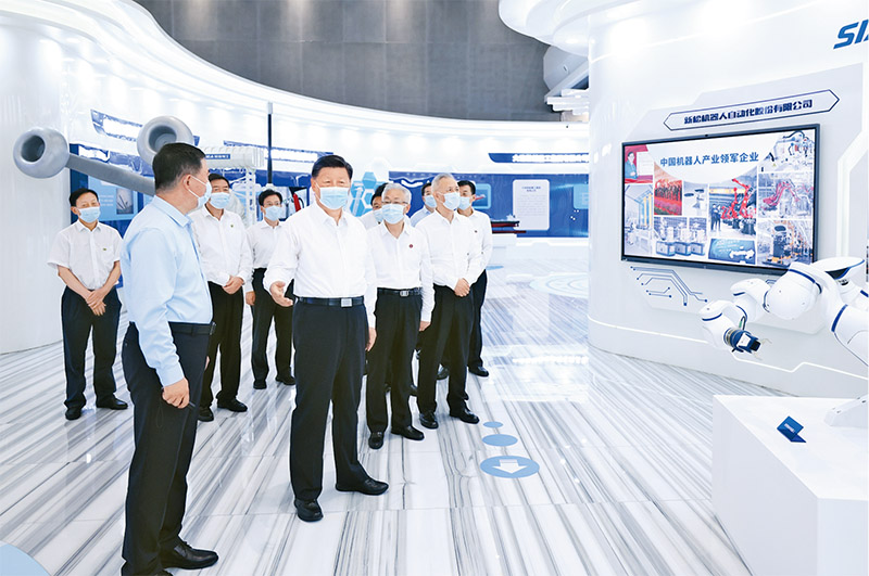 2022年8月16日至17日,中共中央總書記、國(guó)家主席、中央軍委主席習(xí)近平在遼寧考察。這是17日下午,習(xí)近平在沈陽(yáng)新松機(jī)器人自動(dòng)化股份有限公司展廳,了解公司生產(chǎn)經(jīng)營(yíng)、自主創(chuàng)新情況。 新華社記者 鞠鵬/攝