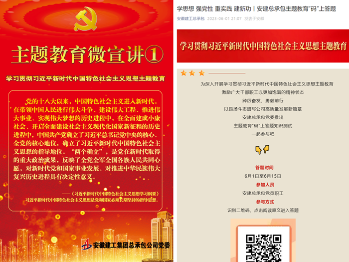 “怎么實(shí)現(xiàn)全黨思想、意志、行動(dòng)的統(tǒng)一?最根本的就是用黨的基本理論武裝全黨?!睂W(xué)習(xí)貫徹習(xí)近平新時(shí)代中國(guó)特色社會(huì)主義思想主題教育開(kāi)展以來(lái),安建總承包黨委牢牢把握“學(xué)思想、強(qiáng)黨性、重實(shí)踐、建新功”總體要求,緊緊錨定主題教育目標(biāo)任務(wù),堅(jiān)決貫徹落實(shí)習(xí)近平總書記關(guān)于主題教育一系列重要指示批示精神,緊密結(jié)合公司深化改革、轉(zhuǎn)型升級(jí)實(shí)際,以?shī)^進(jìn)姿態(tài)推動(dòng)主題教育扎實(shí)開(kāi)展。