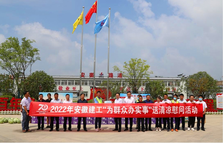 在安徽路橋金寨路項(xiàng)目,集團(tuán)黨委書記、董事長趙時運(yùn)將慰問品送到一線職工手中,并和大家親切交談,細(xì)致了解大家的生活工作情況,叮囑要注意勞逸結(jié)合,做好防暑降溫工作。慰問中,他要求,要深入貫徹落實(shí)習(xí)近平總書記關(guān)于安全生產(chǎn)的重要指示精神,嚴(yán)格落實(shí)高溫天氣作業(yè)時間要求,進(jìn)一步壓實(shí)“五落實(shí)五到位”安全生產(chǎn)主體責(zé)任,加強(qiáng)對防暑降溫等工作的組織領(lǐng)導(dǎo)、措施落實(shí),以安全高效工作成果迎接黨的二十大和建企70周年。