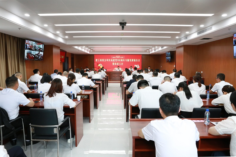 7月3日,建工投資公司在安建國(guó)際大廈14樓召開(kāi)慶祝建黨102周年專題黨課報(bào)告會(huì)暨表彰大會(huì)。公司全體員工通過(guò)“現(xiàn)場(chǎng)+視頻”方式參加會(huì)議,公司黨委委員、副總經(jīng)理唐少先主持會(huì)議。