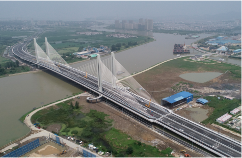 巢湖亞父路位于合肥市合巢經(jīng)開區(qū),全長約4.65公里,其中裕溪河特大橋全橋長974米,為雙塔雙索面預(yù)應(yīng)力混凝土斜拉橋,橋面寬44.5米,為目前國內(nèi)采用前支點牽索掛籃工藝施工的最寬橋梁。