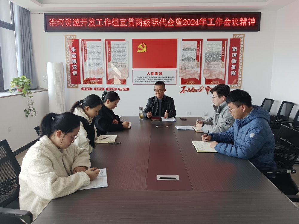 3月11日,淮河資源開發(fā)工作組組織宣貫兩級職代會暨2024年工作會議精神,全體組員參加會議。會上,傳達學(xué)習(xí)了集團和公司兩級職代會精神,細化分解了2024年發(fā)展目標(biāo)責(zé)任書,并就下一步工作進行部署安排。會議要求全體組員必須完整準(zhǔn)確全面貫徹“礦山資源+港口碼頭+物流園區(qū)”三位一體戰(zhàn)略布局,錨定年度目標(biāo)任務(wù),壓實責(zé)任形成上下合力,一分部署,九分落實,加速推進礦山開發(fā)、港口碼頭、倉儲物流、貨運平臺等重點項目落地見效,為推動集團轉(zhuǎn)型發(fā)展高質(zhì)量發(fā)展大發(fā)展貢獻新力量。