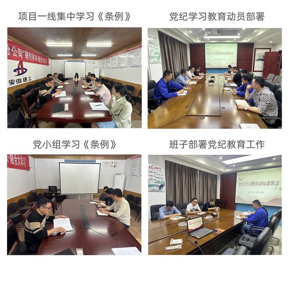 建工安裝滁州分公司黨支部分別在滁州、合肥兩地召開專題會(huì)議,集中傳達(dá)學(xué)習(xí)黨中央關(guān)于黨紀(jì)學(xué)習(xí)教育的決策部署和集團(tuán)公司及公司黨委相關(guān)工作要求,原文學(xué)習(xí)《中國(guó)共產(chǎn)黨紀(jì)律處分條例》,會(huì)議要求要將黨紀(jì)學(xué)習(xí)教育和分公司生產(chǎn)經(jīng)營(yíng)、內(nèi)控管理等工作結(jié)合起來,錘煉作風(fēng)、擔(dān)當(dāng)作為,以嚴(yán)的作風(fēng)、細(xì)的舉措、實(shí)的干勁,助力分公司各項(xiàng)重點(diǎn)目標(biāo)任務(wù)完成。