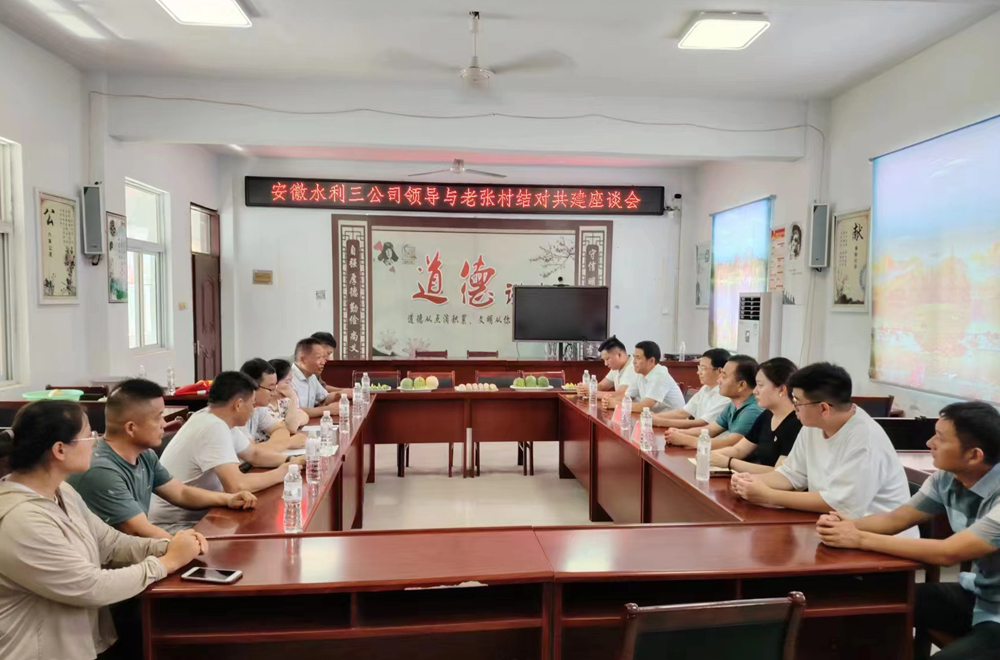 在村黨群服務(wù)中心,三公司黨總支同鄉(xiāng)鎮(zhèn)分管負責(zé)同志、村兩委、駐村工作隊就老張村產(chǎn)業(yè)發(fā)展現(xiàn)狀、新時代人才培養(yǎng)、鄉(xiāng)土文化建設(shè)特色、綠色生態(tài)發(fā)展理念、基層黨組織戰(zhàn)斗堡壘作用的發(fā)揮及未來規(guī)劃進行深入交流。期間村里展示了安徽水利幫扶產(chǎn)出的玉米、香瓜等農(nóng)產(chǎn)品。雙方就駐村工作事項達成一致意見。會上指出駐村選派干部要深入學(xué)習(xí)領(lǐng)會習(xí)近平總書記關(guān)于鄉(xiāng)村全面振興的部署要求,一要提高政治站位,迅速轉(zhuǎn)變角色,深入組戶,盡快熟悉村情民意和鄉(xiāng)村振興的政策,鞏固拓展脫貧攻堅成果;二要建強村黨組織,明確工作職責(zé),加強團結(jié)協(xié)作,駐村工作隊與村“兩委”形成合力,找準出力點,打好“配合仗”,用心用情做好為民服務(wù);三要結(jié)合老張村村情挖掘資源,積極對接,謀實謀細發(fā)展規(guī)劃、年度計劃,為加快建設(shè)彰顯皖韻水鄉(xiāng)的宜居宜業(yè)和美鄉(xiāng)村貢獻團隊力量。
