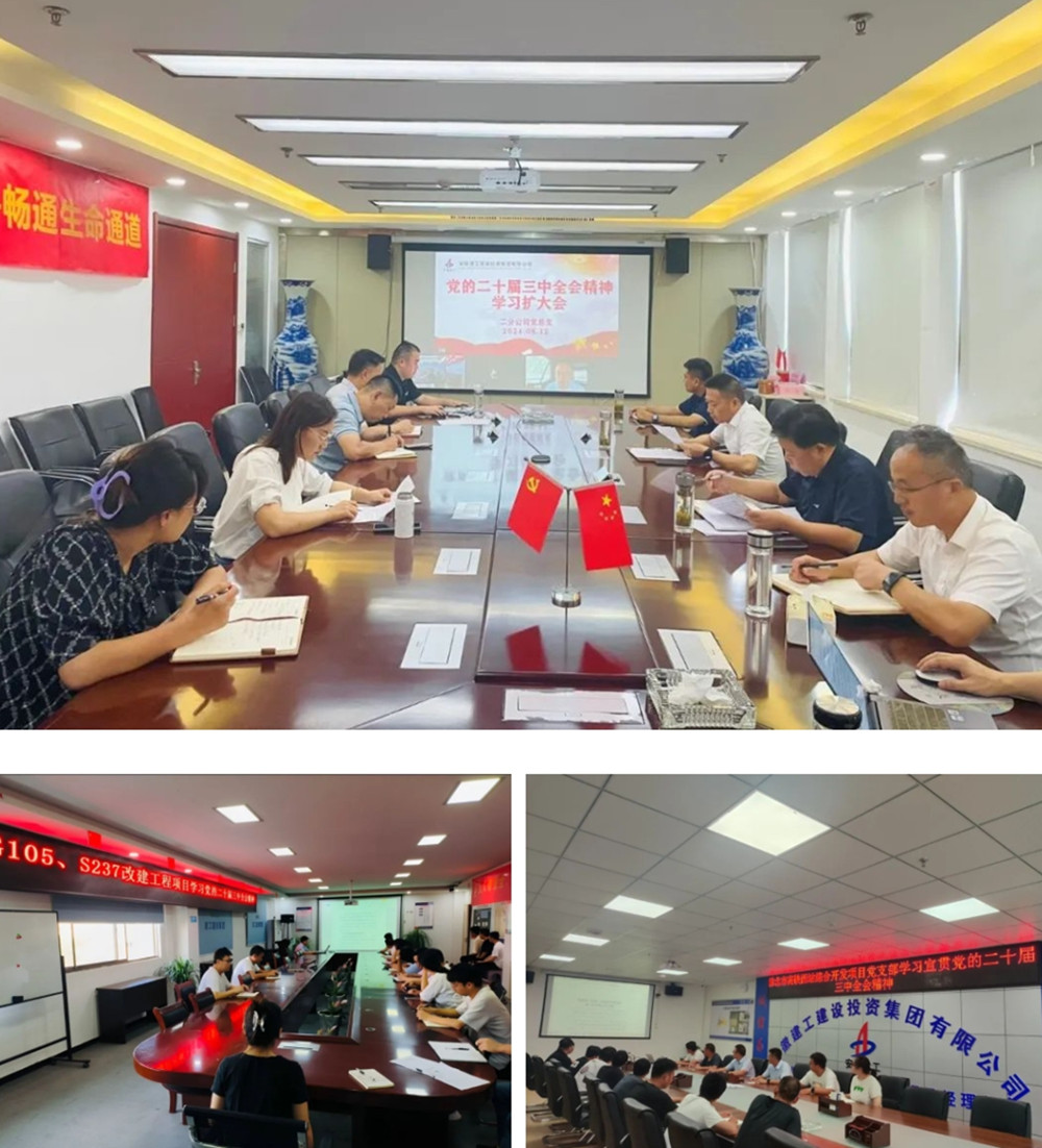 8月6日至12日,所屬各黨支部、項(xiàng)目部組織召開學(xué)習(xí)宣貫黨的二十屆三中全會精神專題會議。會上,項(xiàng)目部全體黨員和職工共同學(xué)習(xí)了黨的二十屆三中全會的主要內(nèi)容和精神實(shí)質(zhì),并結(jié)合項(xiàng)目實(shí)際,圍繞如何落實(shí)全會精神、推動(dòng)項(xiàng)目高質(zhì)量發(fā)展進(jìn)行了深入研討交流。大家一致認(rèn)為,要深入學(xué)習(xí)領(lǐng)會全會精神,進(jìn)一步統(tǒng)一思想、凝聚力量,以更加飽滿的熱情和更加務(wù)實(shí)的作風(fēng),抓好項(xiàng)目管理,將全會精神轉(zhuǎn)化為推動(dòng)項(xiàng)目建設(shè)的實(shí)際行動(dòng),確保實(shí)現(xiàn)全年各項(xiàng)目標(biāo)任務(wù)。