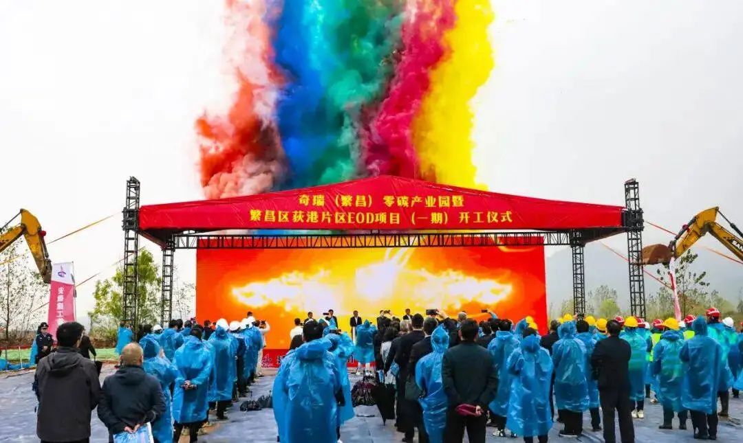 隨著出席本次EOD項目開工儀式的領導共同按下能量柱,一團七色祥云禮花綻放空中,標志著由安徽建工路港承建的奇瑞零碳產(chǎn)業(yè)園暨荻港片區(qū)EOD項目正式進入實施階段。