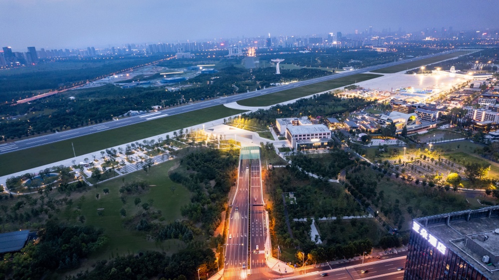“一隧穿城融綠韻,城市更新賦動(dòng)能?!睘I湖科學(xué)城花園大道(徽州大道-包河大道)建設(shè)工程位于合肥濱湖科學(xué)城,西起徽州大道,東至包河大道,全長(zhǎng)約3km,其中2.26km采用下穿隧道方式穿越錦繡湖、公園生態(tài)綠地及機(jī)場(chǎng)跑道。項(xiàng)目在設(shè)計(jì)復(fù)雜程度、施工工藝難度上均刷新全省“紀(jì)錄”,創(chuàng)下全省市政道路建設(shè)史上的多個(gè)“首次”,順利實(shí)現(xiàn)135m箱涵節(jié)段“無(wú)損”下穿機(jī)場(chǎng)跑道,讓“老”機(jī)場(chǎng)建“新”園博這一最大特色得到完美體現(xiàn)。