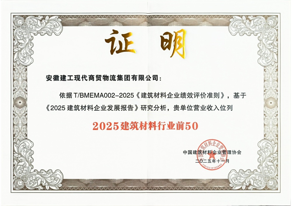 獲此榮譽(yù),既是對(duì)公司過去一年經(jīng)營(yíng)成果的權(quán)威認(rèn)可,更是對(duì)公司在建材供應(yīng)鏈領(lǐng)域的綜合實(shí)力與服務(wù)標(biāo)桿地位的彰顯。展望未來,公司將圍繞“商貿(mào)+物流”兩大優(yōu)勢(shì)業(yè)務(wù),持續(xù)提升供應(yīng)鏈效率與服務(wù)質(zhì)量,為建材行業(yè)高質(zhì)量發(fā)展注入新動(dòng)能。