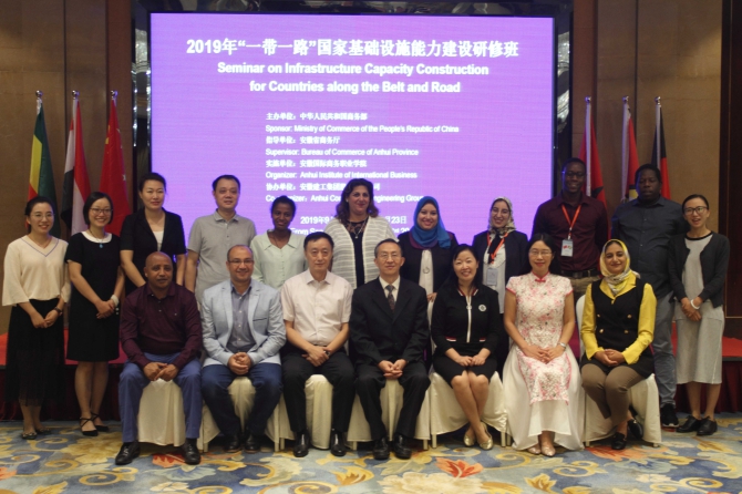 On the afternoon of September 23rd, 2019, the 20 - daylong Seminar of Infrastructure Capacity Building for the Nations along “Belt and Road" (B&R), 2019, concluded with great success and the closing ceremony was held at Fengda International Hotel in Hefei, the capital city of Eastern China`s Anhui Province. This event was sponsored by the Ministry of Commerce of China and directed by Anhui Provincial Department of Commerce and co-organized by Anhui Construction Engineering Group and Anhui International Business Vocational College and the members of the Seminar attendees from 5 nations. Ms. Xing Yingmei, Vice General Manager of ACEG Overseas Branch delivered a speech.