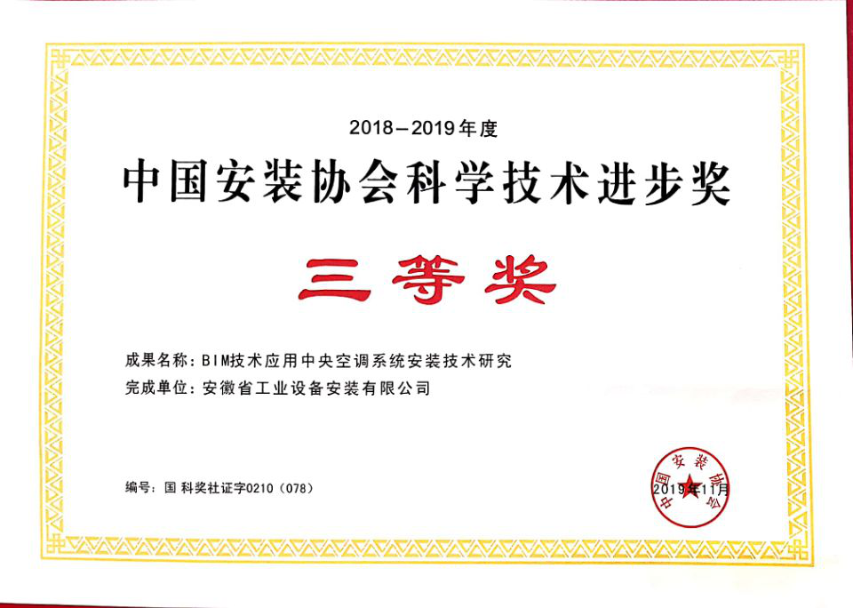 This award is organized by China Installation Association, represents the highest level of technology in China`s installation industry.