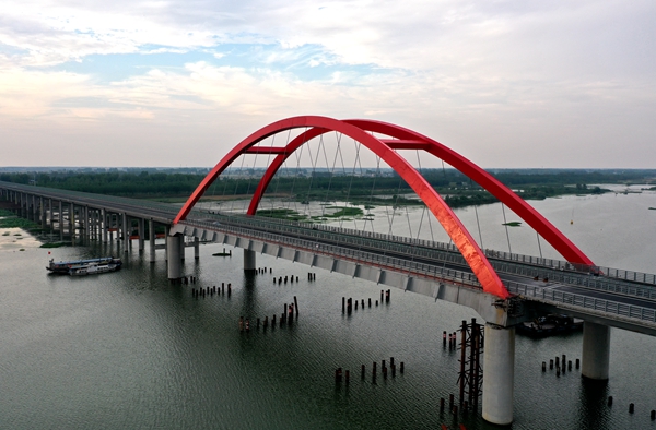 According to the technical staff of the project, Grand Bridge Kuaihe,with a total length of 2, 611KM, is a key and regulatory subproject of Gubang Expressway and also a bridge across shipping lanes. The main bridge is 135 meters long and is designed as a steel box basket handle tied arch bridge. It is also the first composite girder tie arch bridge on an expressway in Anhui Province, China.